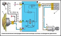 Он включается при срабатывании датчика-выключателя 37101Б, установленного в нижней части правого бачка радиатора
