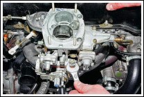 Проверить и отрегулировать величину приоткрытия воздушной заслонки можно на автомобиле, сняв крышку воздушного фильтра