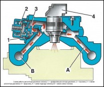 Агрегат центрального впрыска топлива (рис. 1) устанавливается на впускной трубе вместо карбюратора и состоит из корпуса топливоподачи (верхняя часть агрегата) и корпуса дроссельной заслонки (нижняя часть агрегата)
