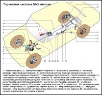 Автомобиль оборудован двумя тормозными системами рабочей и стояночной