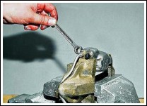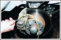 Снимаем суппорт переднего тормоза (Ремонт переднего тормозного механизма ВАЗ-2107), не отсоединяя от него тормозной шланг