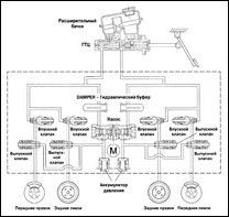 Первая, оснащенная гидравлическим приводом, обеспечивает торможение при движении автомобиля, вторая затормаживает автомобиль на стоянке