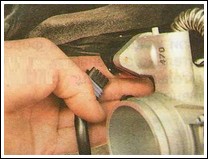 Регулятор холостого хода, расположенный в верхней части дроссельного узла, состоит из двухполюсного шагового электродвигателя и соединенного с ним конусного клапана