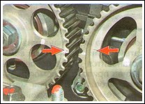 Поршень 1-го цилиндра устанавливают в положение верхней мертвой точки (ВМТ) такта сжатия для того, чтобы при проведении работ, связанных со снятием ремня привода распределительного вала, не нарушалась установка фаз газораспределения