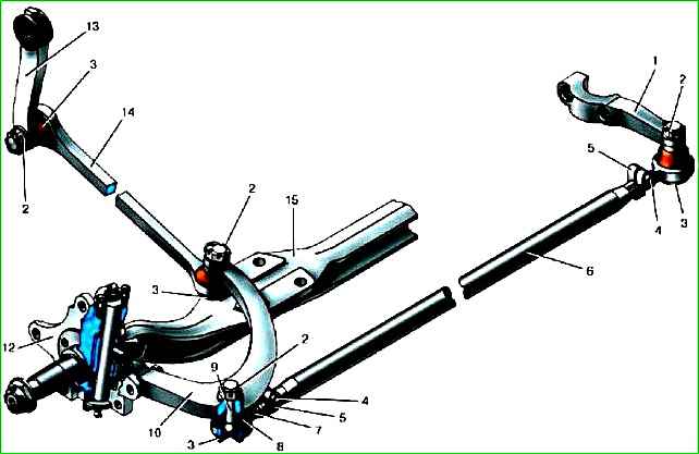 Das Lenkgestänge befindet sich hinter dem Vorderachsträger.