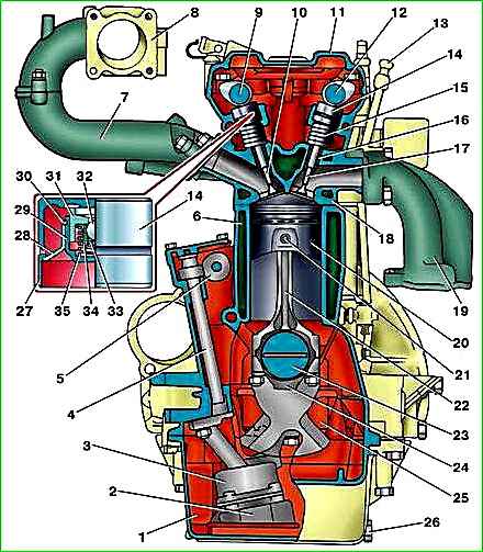 Querschnitt des ZMZ-40524-Motors in Abbildung 1.