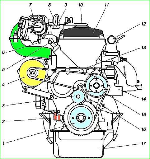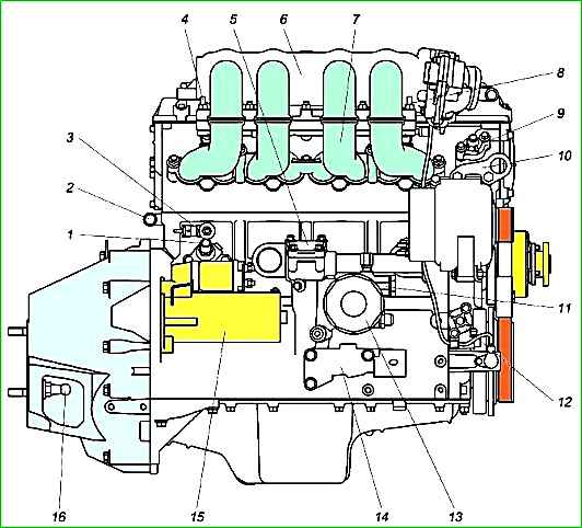 Linke Seite des ZMZ-40524-Motors in Abbildung 2