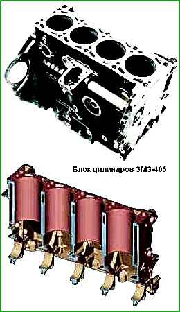 Blöcke mit Löchern in den Zylinderwänden, Rissen in der oberen Ebene des Blocks und an den Rippen, die die Hauptlager tragen, mit Löchern im Wassermantel und im Kurbelgehäuse unterliegen der Ablehnung.