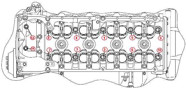 Die Reihenfolge beim Anziehen der Zylinderkopfschrauben ist in der Abbildung dargestellt. Schmieren Sie die Schraubengewinde vor dem Einbau mit Öl;