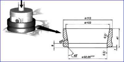 - - Nehmen Sie den Kettendeckel mit der Gummidichtung und prüfen Sie die Eignung der Dichtung für weitere Arbeiten. Wenn die Öldichtung abgenutzte Arbeitskanten aufweist oder die Kurbelwellenbuchse nur schwach abdeckt, ersetzen Sie sie durch eine neue. Es empfiehlt sich, den Wellendichtring mit einem Dorn in den Deckel zu drücken;
