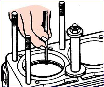 - - Schrauben Sie den Ablasshahn vom Zylinderblock ab; - Pleuellager von den Pleueln entfernen; - Pleuelkappen auf die Befestigungsbolzen montieren, Muttern eindrehen;