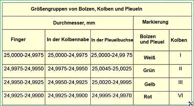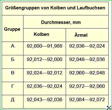 - Wählen Sie neue Kolben mit Laufbuchsen mit einem Spalt von 0,012–0,024 mm aus.