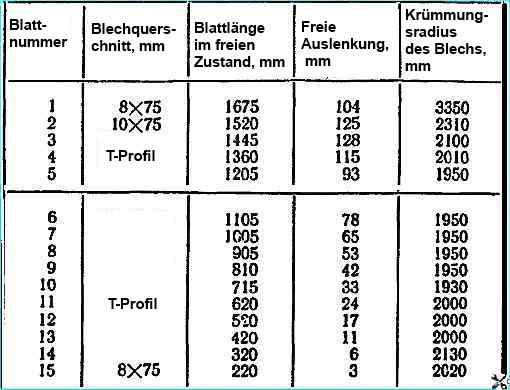 Wenn die Enden des ersten Federblattes mehr als 9 mm abgenutzt sind, ist es zulässig, das erste und dritte Federblatt auszutauschen.