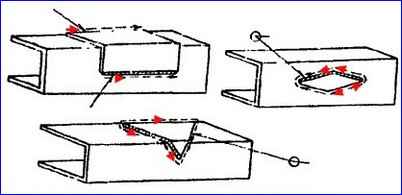 Das Richten des Rahmens muss im kalten Zustand mit hydraulischen Hebern oder Klemmen erfolgen; in Ausnahmefällen kann das Richten auch mit einem Vorschlaghammer unter Verwendung von Dornen und Stützen erfolgen.