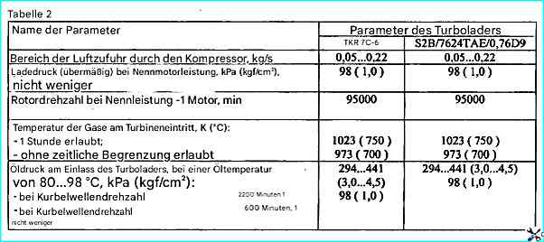Die technischen Daten der Turbolader sind in Tabelle 2 aufgeführt.