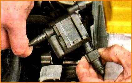 Die Zündspule ist über vier Hochspannungskabel mit permanenten Spitzen mit den Zündkerzen verbunden.