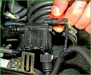 Das Ventil verbindet den Adsorberhohlraum mit der Drosselbaugruppe – und das Sorptionsmittel wird gespült: Kraftstoffdämpfe werden mit Luft vermischt und über die Drosselbaugruppe in den Ansaugtrakt und weiter in die Motorzylinder abgegeben.
