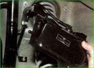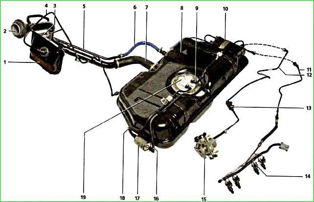Vom Abscheider gelangen Kraftstoffdämpfe über ein mit „TANK“ gekennzeichnetes Anschlussstück in den Adsorber (an der Oberseite des Kraftstofftanks auf der linken Seite installiert), wo sie von Aktivkohle absorbiert werden.