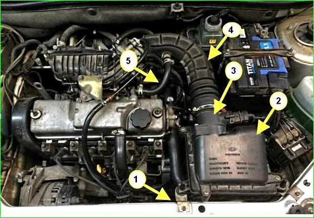 Der Luftfilter ist vorne links im Motorraum auf drei Gummihaltern (Stützen) montiert.