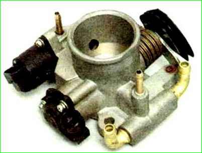 Die Drosselklappenbaugruppe ist ein Drosselklappengehäuse (mit darin eingearbeiteten Kanälen), an dem die Leerlaufdrehzahlregelung und der Drosselklappenstellungssensor installiert sind.