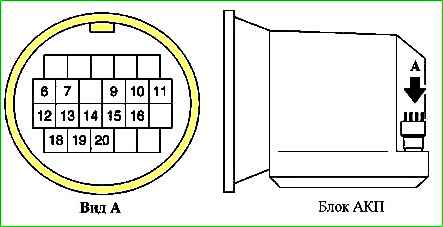 Belegung der Kontakte des Steuergerätes Automatikgetriebe (21126-1412020)
