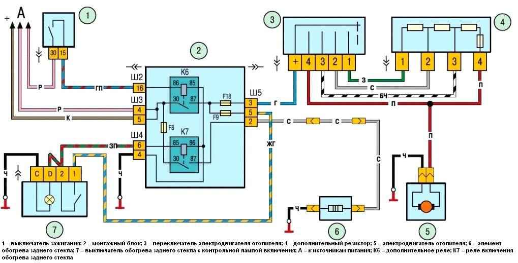 Das Diagramm der Heckscheibenheizung ist in Abb. dargestellt. 1.