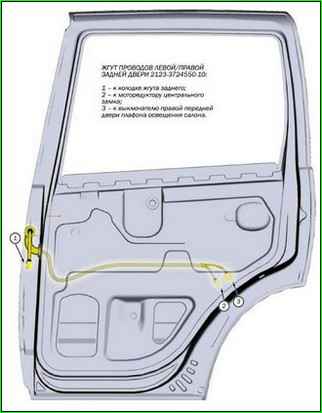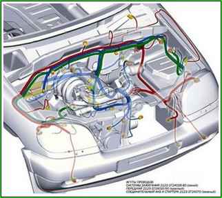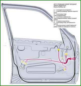 Die folgenden Abbildungen zeigen die Anordnung der Kabelbäume des Fahrzeugs VAZ-2123.