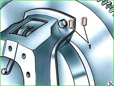Montieren Sie die Kupplung am Schwungrad entsprechend der werkseitigen „O“-Markierung auf beiden Teilen, eines gegenüber dem anderen, in der Nähe einer der Schrauben, mit denen das Kupplungsgehäuse am Schwungrad befestigt ist (Abb. 1).