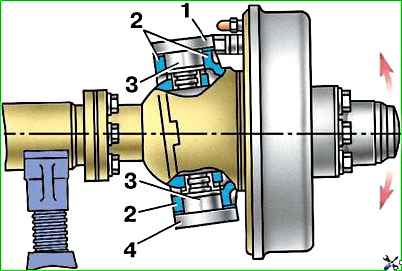 Um Reparaturen durchzuführen, entfernen Sie die vordere Antriebsachse aus dem Fahrzeug und zerlegen Sie sie.