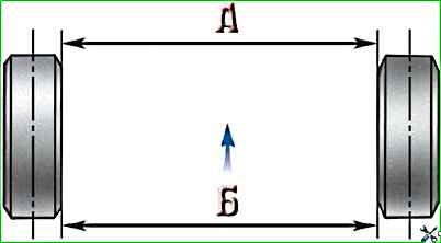 Die Vorspur der Räder sollte bei normalem Reifendruck der Größe A (Abb. 4) entsprechen, gemessen entlang der Die Mittellinie der seitlichen Vorderreifenoberfläche war 1,5 –3,0 mm kleiner als die Größe B hinten .