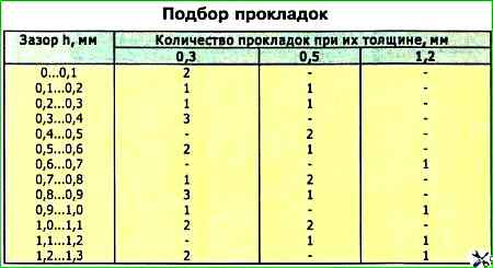 Wählen Sie dann die Dichtungen anhand der Tabelle aus.