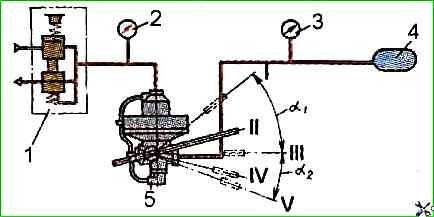 Bei einem sanften Anstieg und Abfall des Drucks am Manometer 2 sollte die sprunghafte Änderung des Drucks am Manometer 3 in allen Positionen des Hebels 0,02 MPa nicht überschreiten.
