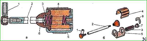 Um das elastische Element zu demontieren, halten Sie es am Körper 5 in einen Schraubstock mit weichen Backen und schrauben Sie eine M10x1,5-Schraube in die Führung 7 (Abb. 3) der Feder.