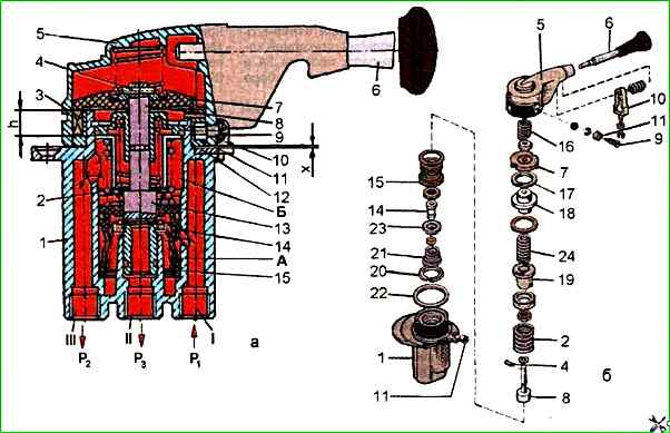 Lösen Sie den Ventilkörper 1 aus dem Schraubstock und entfernen Sie den Kolben 15 mit der Ventilbaugruppe 14 mithilfe eines Holzdorns, der durch den atmosphärischen Anschluss III eingeführt wird.