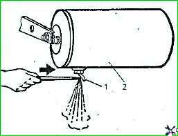 Um den normalen Betrieb des pneumatischen Bremsantriebssystems sicherzustellen, ist es während der Wartung erforderlich, die Ablassventile in den Luftzylindern zu öffnen und auf das Vorhandensein von Kondensat zu prüfen (Abb. 2).