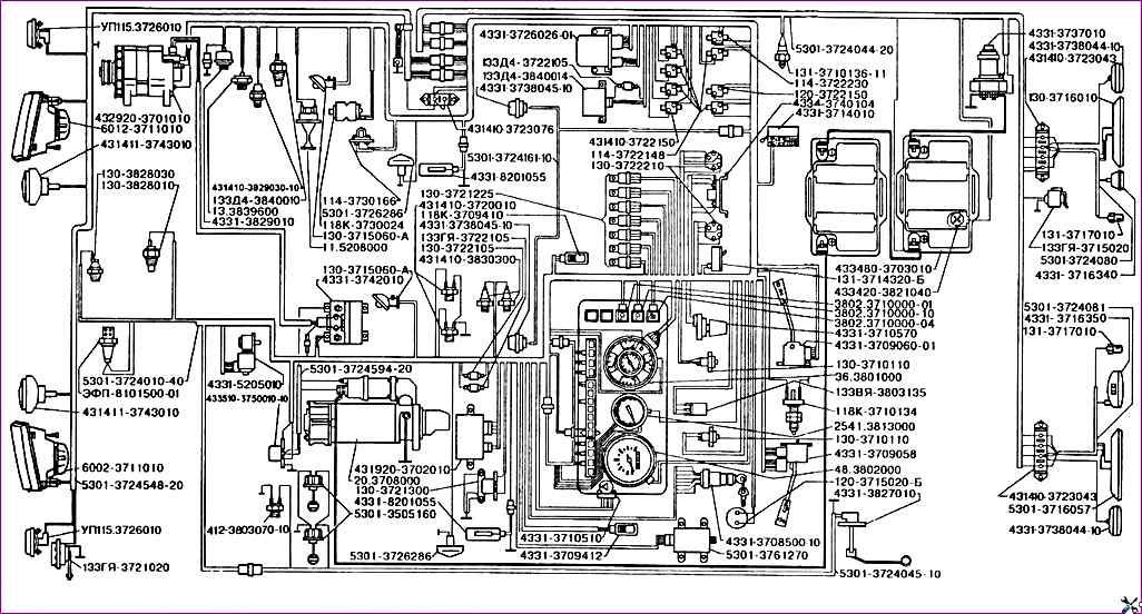 Kabel- und Instrumentenlayout und Katalognummern für das Fahrzeug ZIL-5301