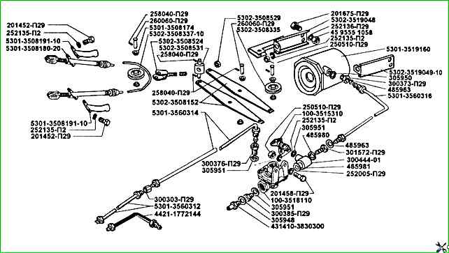Das Fahrzeug ZIL-5301 ist mit einem Feststellbremssystem ausgestattet, das von einem Federenergiespeicher angetrieben wird.