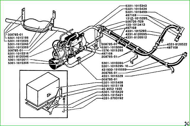 Einbaudetails für die Flüssigkeitsheizung des Autos ZIL-5301 gemäß Katalog