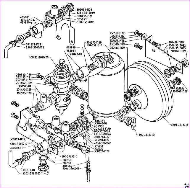 Installation der Steuer- und pneumatischen Bremsausrüstung ZIL-5301 gemäß Katalog