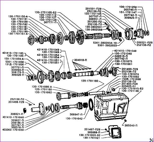 Getriebeteile für das Auto ZIL-5301 laut Katalog