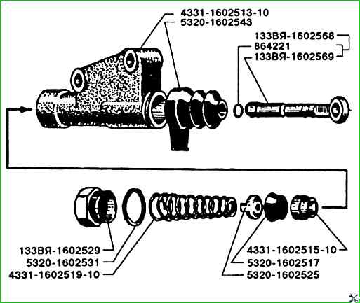 Teile des Kupplungsgeberzylinders ZIL-5301 gemäß Katalog