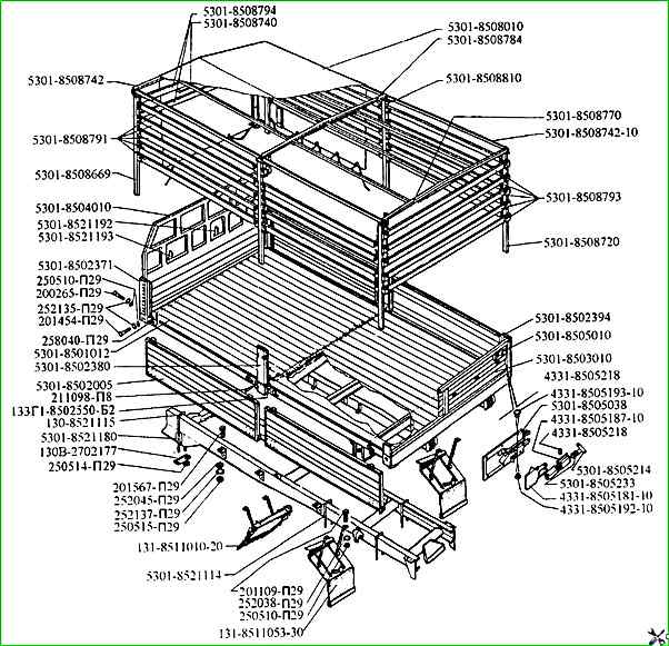 Teile der ZIL-5301-Plattform gemäß Ersatzteilkatalog