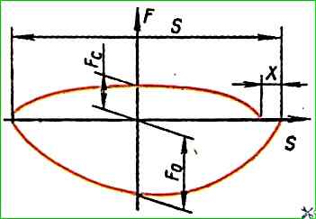 Arbeitsdiagramme müssen dem Steuerdiagramm (Abb. 3) entsprechen, wobei Fc die Widerstandskraft während des Kompressionshubs ist; Fo – Widerstandskraft beim Rückprall; S - Kolbenbewegung. Die Abwesenheit von Widerstandskräften ist zulässig Übergangsbereich des Beginns des Kompressionshubs.