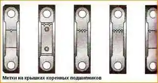 Устанавливаем крышки коренных подшипников в соответствии с метками, нанесенных на их наружной поверхности (счет крышек ведется со стороны привода ремня ГРМ).