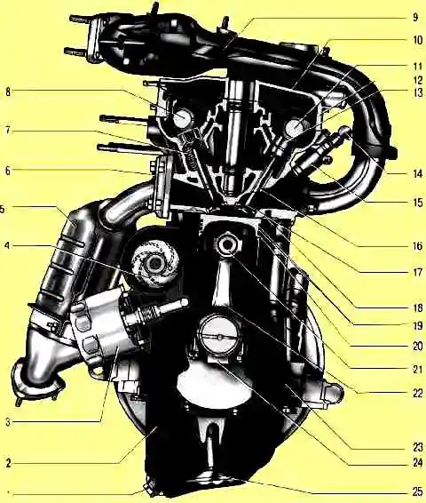 Головка блока, установленная сверху на блок цилиндров, отлита из алюминиевого сплава.