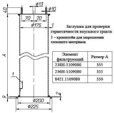 Для проверки герметичности впускного тракта вместо фильтрующего элемента установить заглушку (см. рис. 3) с закрепленным внутри нее тлеющим материалом (паклей, технической ватой и др.).