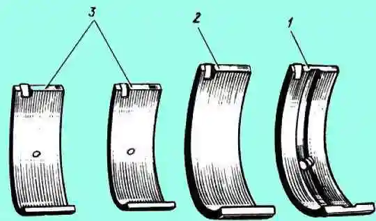 Вкладыши коренных подшипников коленчатого вала и нижней головки шатуна (рис. 4) – сменные, тонкостенные, имеют стальное основание и рабочий слой из свинцовистой бронзы.