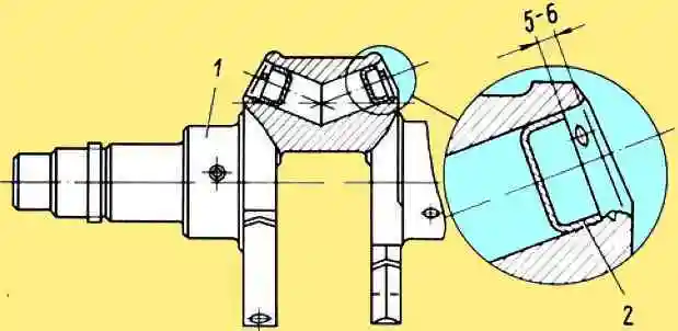 При каждом снятии коленчатого вала с двигателя очистить полости шатунных шеек, предварительно удалив заглушки 2 (рис. 4), которыми закрыты полости.