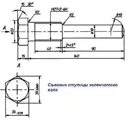 Снять шкив привода. Для снятия ступицы со шкивом и гасителем с конического конца коленчатого вала восьмицилиндрового двигателя использовать съемник, показанный на рисунке 6.