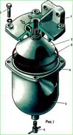 Отверните сливную пробку 6 (рис. 1), слейте отстой из фильтра.